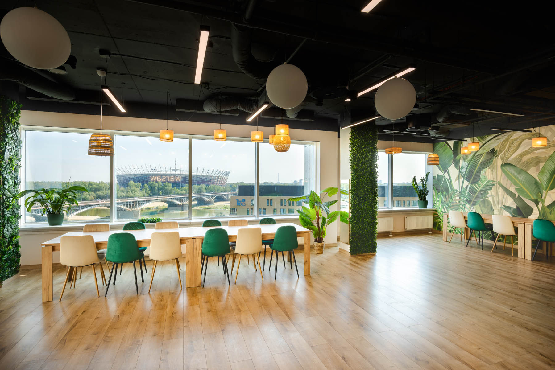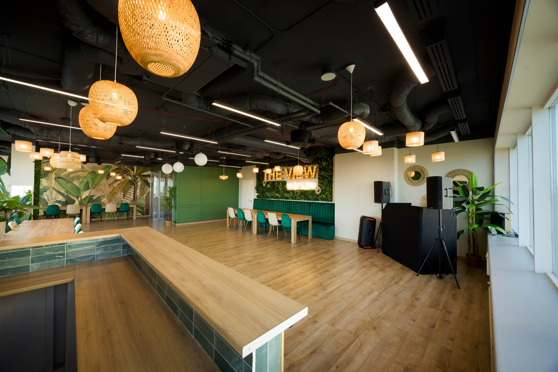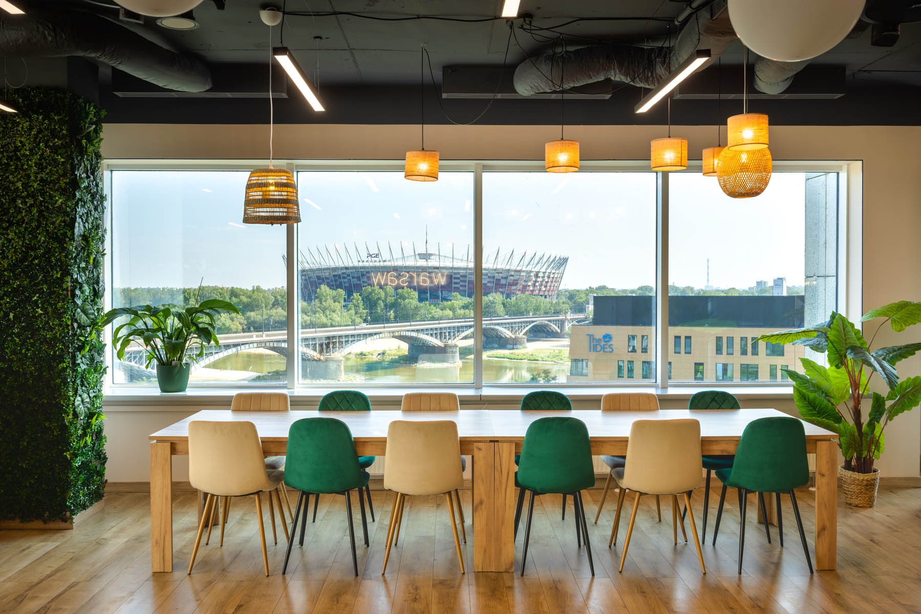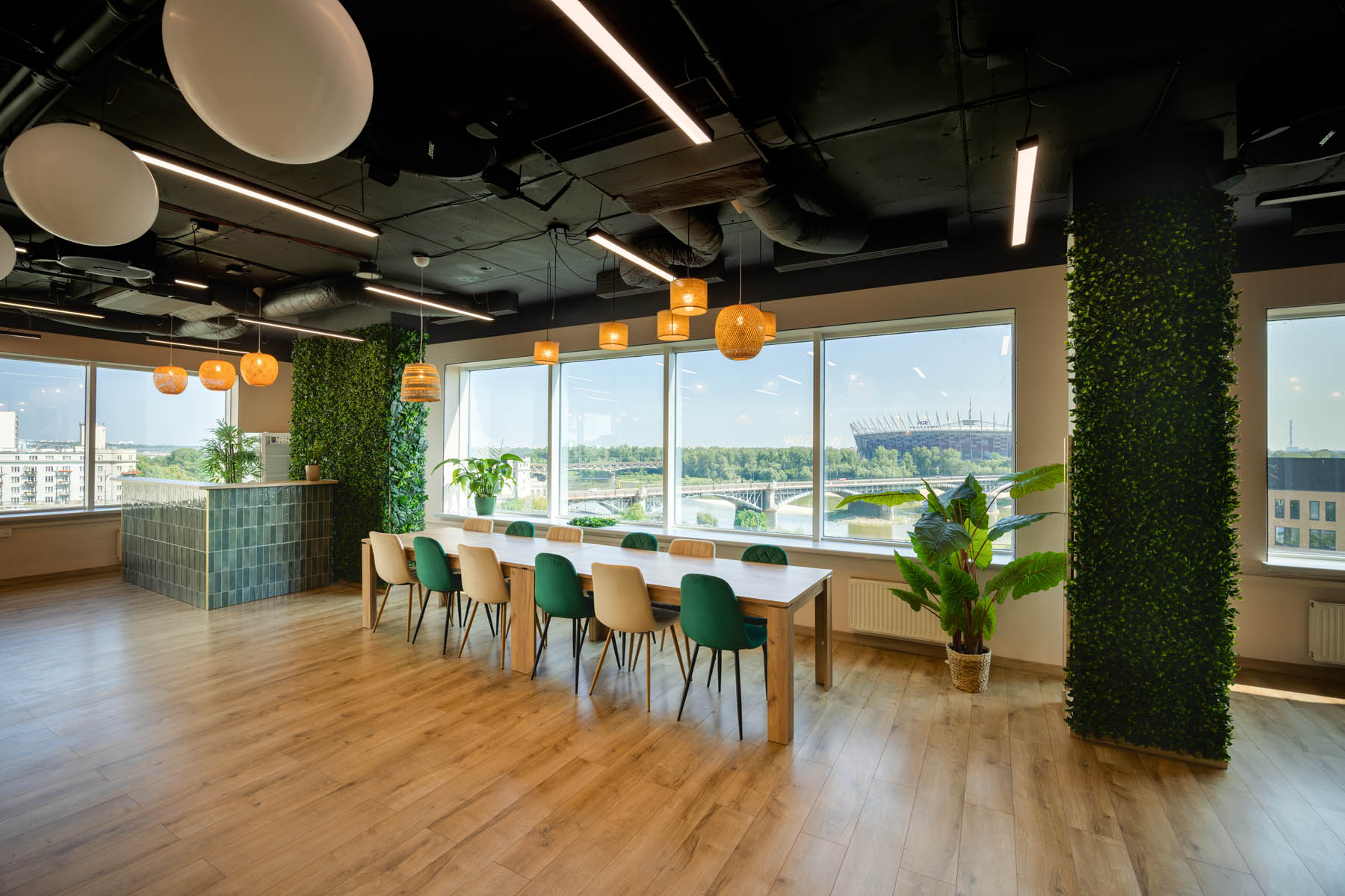 Głównymi atutami naszej nowej przestrzeni są niesamowite widoki z 7 piętra na między innymi rozświetlony Stadion Narodowy, Nadwiślańskie Bulwary i Pałac Kultury oraz świetna lokalizacji w samym sercu Warszawy. Piękne wnętrze zostało stworzone pod wszelkiego rodzaju eventy, imprezy firmowe i okolicznościowe, konferencje, spotkania czy szkolenia – to Ty decydujesz co chcesz zorganizować w naszej przestrzeni.